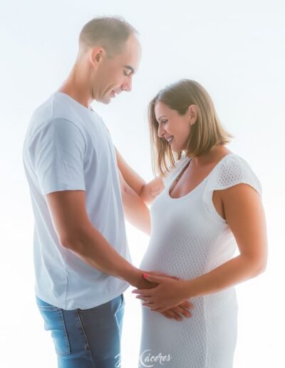 Ahora bien, aunque nos hemos concentrado en hablar de la madre, como principal protagonista de la sesión fotográfica no significa que obligatoriamente el padre quede excluido. De hecho, esta es una hermosa etapa para ambos, y es por ello que en nuestros reportajes fotográficos, además de las mamás guapas, también capturamos esa hermosa conexión entre ambos padres, responsables juntos, de la nueva vida en camino.